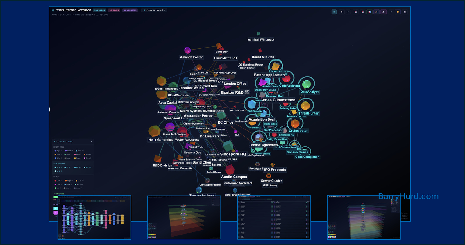 When a junior analyst opens Confidence Depth and sees an entire high-priority cluster sitting on the “unconfirmed” layer, the visual encoding delivers the insight directly - no ten years required. When they switch to Counter-Intelligence View and see a low-confidence external entity two hops from a critical asset, the spatial arrangement does the analytical work that would otherwise require deep institutional knowledge.