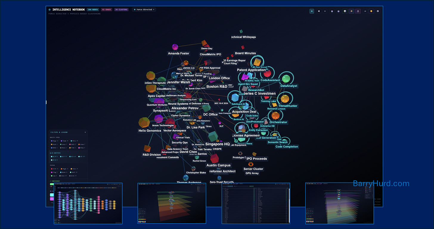 The data problem we were addressing served as yet another reason I was building the Intelligence Notebook: a knowledge graph visualiser that turns structured data into interactive 3D networks you can think with. And the more I worked defining Data Readiness Levels (DRL), the more I realised these two things are the same pipeline and problem space. Data Maturity Matters is building the upstream discipline. The notebook is what becomes possible downstream when that discipline is in place.